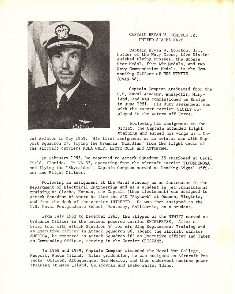 | CAPT Bryan Whitfield Compton Jr. (1) | USNA 1951 | 12 July 1972 - 21 August 1976 | RADM |