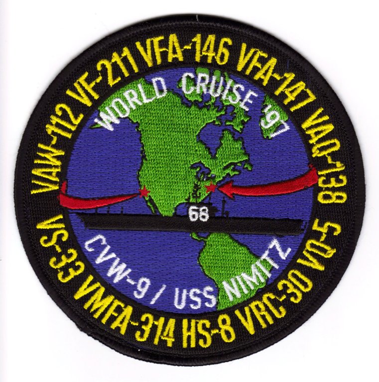 53k | USS Nimitz (CVN-68) and Carrier Air Wing (CVW) 9 WestPac, Indian Ocean and Persian Gulf deployment, 27 November 1995–20 May 1996. CVW-9 CVN-68, WestPac '96, Sho̅gun On the Cutting Edge VQ-5, VAW-112, VAQ-138, VFA-146, VF-211, VA-165, VF-24, VFA-147, HS-8, VRC-30, VS-33 |