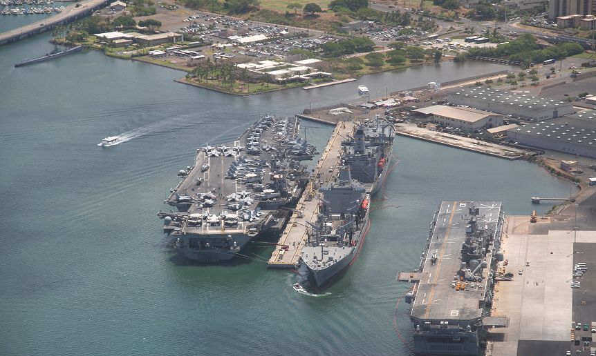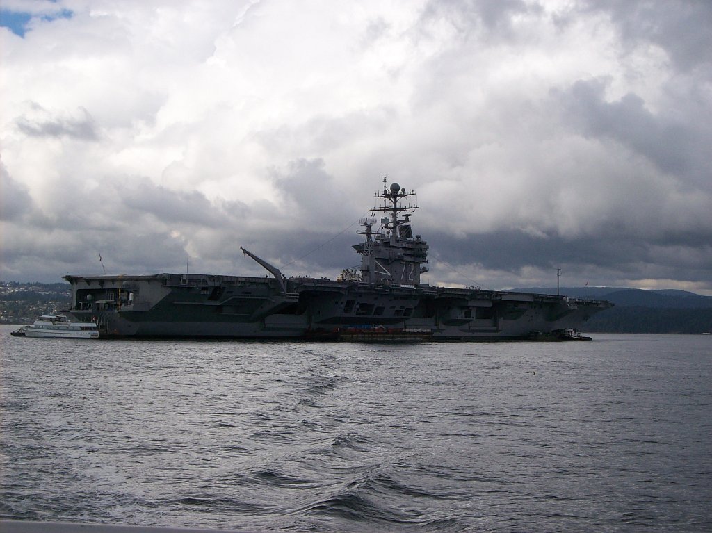 537k | Naval Station Norfolk, 19 December 2012. Ships are, right to left: USS Dwight D. Eisenhower (CVN-69), USS George H.W. Bush (CVN-77), ex-USS Enterprise (CVN-65), USS Bataan (LHD-5), USS Abraham Lincoln (CVN-72), USS Harry S. Truman (CVN-75), and USS Wasp (LHD-1). U.S. Navy photo by Mass Communication Specialist 3rd Class Kevin J. Steinberg, # 121219-N-TB177-875. |