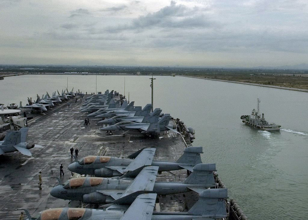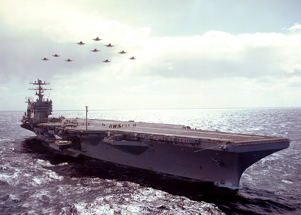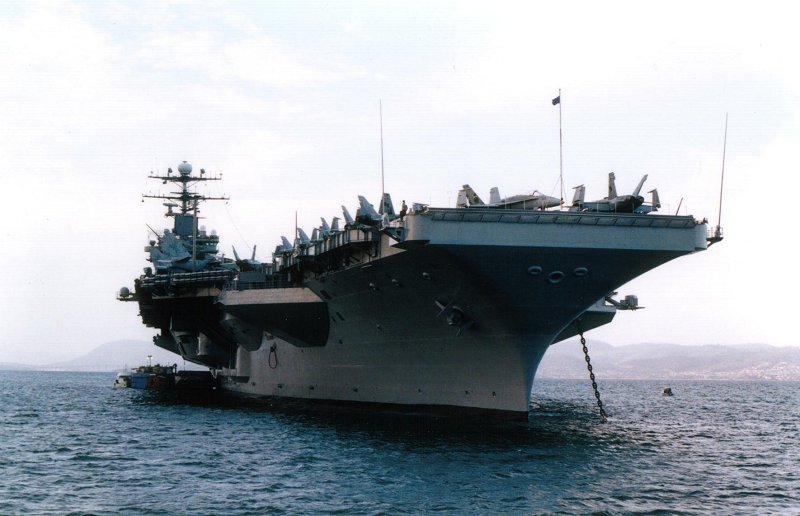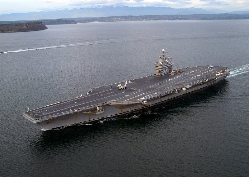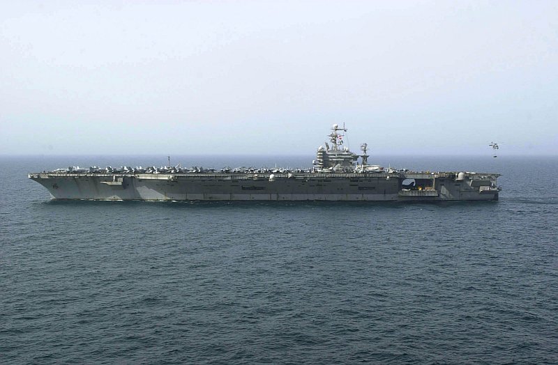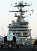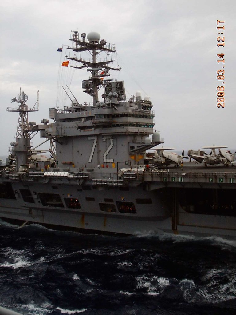 78k | The Arabian Gulf, Apr. 7, 2003 USS Abraham Lincoln (CVN-72) steams alongside USS Nimitz (CVN-68) during weapons and cargo transfers between the two ships. The Nimitz Carrier Strike Force and Carrier Air Wing Eleven (CVW-11) were relieving Abraham Lincoln and CVW-14 in support of Operation Iraqi Freedom. U.S. Navy photo by Photographer’s Mate 3rd Class Yesenia Rosas. [030407-N-2385R-002]. |