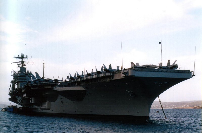 462k | USS Abraham Lincoln (CVN-72) underway with Carrier Air Wing (CVW) 14, probably in the Gulf of Alaska during Northern Edge 2002, 14–30 April. |