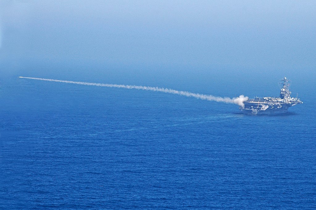 138k | USS Abraham Lincoln (CVN-72) underway at high speed in the Western Pacific Ocean, April 4, 2008. Abraham Lincoln and embarked Carrier Air Wing (CVW) Two were underway on a scheduled deployment to the 5th Fleet area of responsibility. U.S. Navy photo by Mass Communication Specialist 2nd Class James R. Evans (# 080404-N-7981E-692). |
