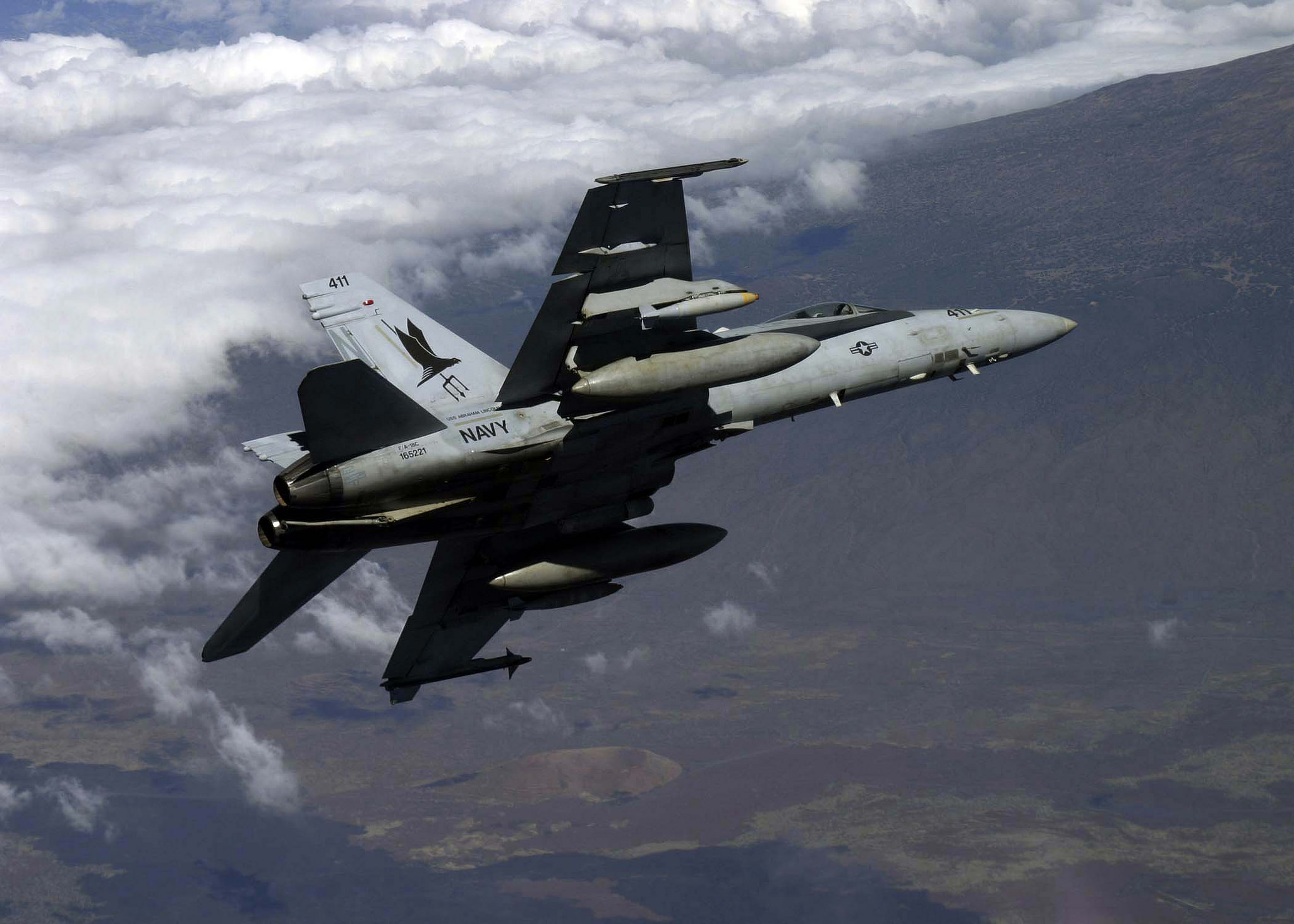 332k | Sailors assigned to the "Stingers" of Strike Fighter Squadron (VFA) 113 perform a pre-flight inspection on an F/A-18C(N) Hornet aboard USS Abraham Lincoln (CVN-72) in the Gulf of Alaska, 21 April 2002. U.S. Navy photo by Photographer's Mate Airman Mason Cavazos (# 020421-N-0268C-001). |