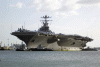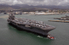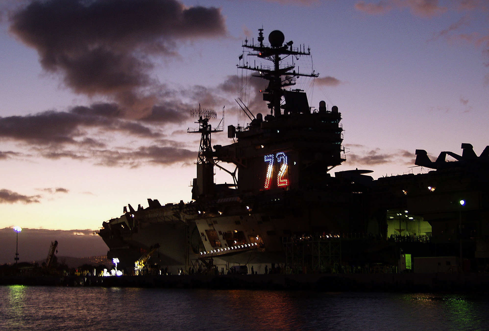 700k | USS Abraham Lincoln (CVN-72) is moored at Naval Station Pearl Harbor for a brief port visit, 30 September 2008, before completing a seven-month deployment supporting maritime security operations and theater security cooperation in the U.S. 5th and 7th Fleet areas of responsibility. The Nimitz-class aircraft carrier also participated in action supporting operations Iraqi Freedom and Enduring Freedom. U.S. Navy photo by Chief Mass Communication Specialist David Rush (# 080930-N-0879R-001). |