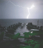 103k | Nov. 1, 2002 Lightning strikes on the horizon, light up the bow of the aircraft carrier during a storm in the Arabian Sea. U.S. Navy photo by Photographer's Mate 2nd Class Aaron Ansarov. [021101-N-4309A-003]. |