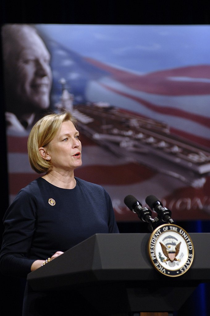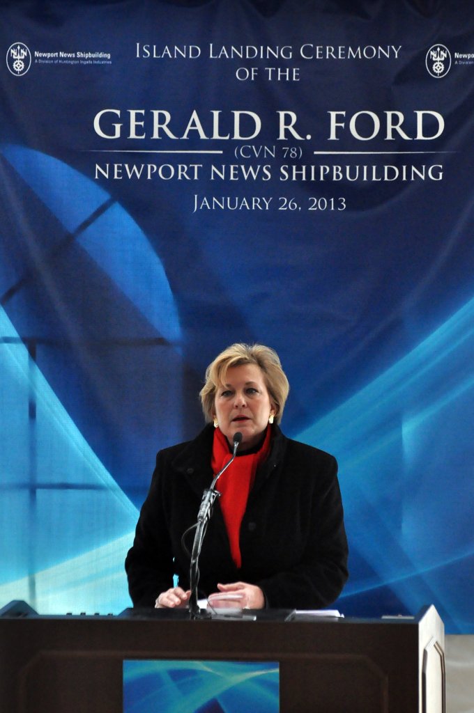 78k | Susan Ford Bales, daughter of President Gerald R. Ford, speaks during the official naming ceremony of USS Gerald R. Ford (CVN-78). U.S. Navy photo by Chief Mass Communication Specialist Shawn P. Eklund (# 070116-N-3642E-217). |