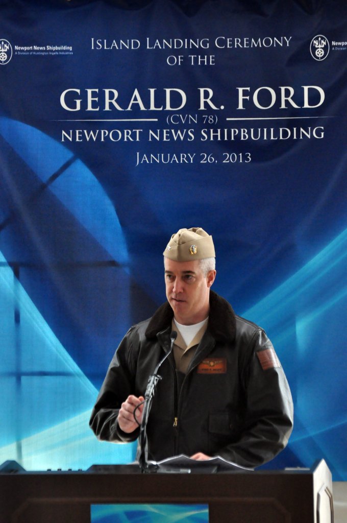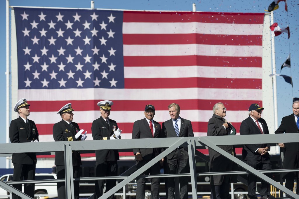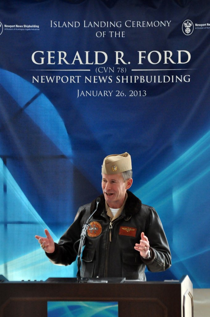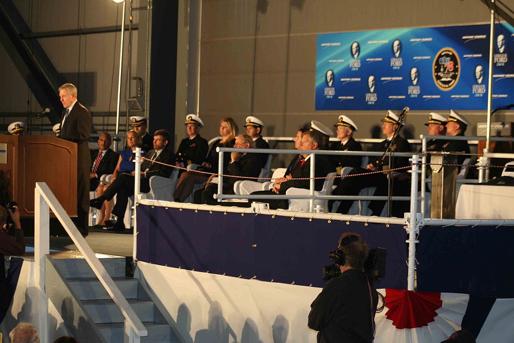 124k | Secretary of the Navy (SECNAV) the Honorable Ray Mabus delivers remarks during the keel laying and authentication ceremony for the newest class aircraft carrier Gerald R. Ford (CVN-78). U.S. Navy photo by Mass Communication Specialist 2nd Class Kevin S. O'Brien (#091114-N-5549O-091). |