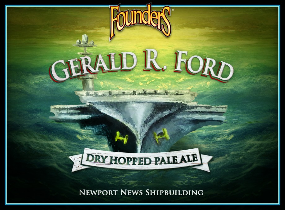 175k | Postcard issued by Founders Brewery, Grand Rapids, MI, the boyhood home of Gerald R. Ford. They provided the Christening Ceremony beverages. |