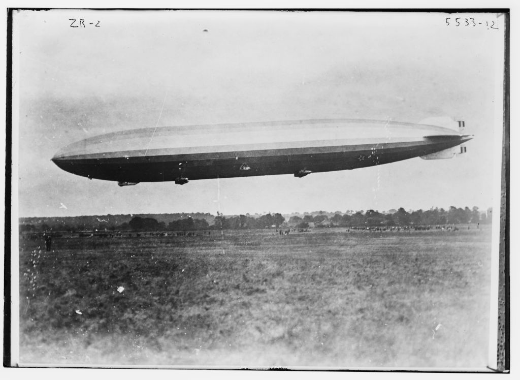 85k | British airship R-38 (U.S. Navy ZR-2), possibly on its first trial flight, 23 June 1921. Library of Congress Prints and Photographs Division, George Grantham Bain Collection. Call Number: LC-B2-5533-12. |