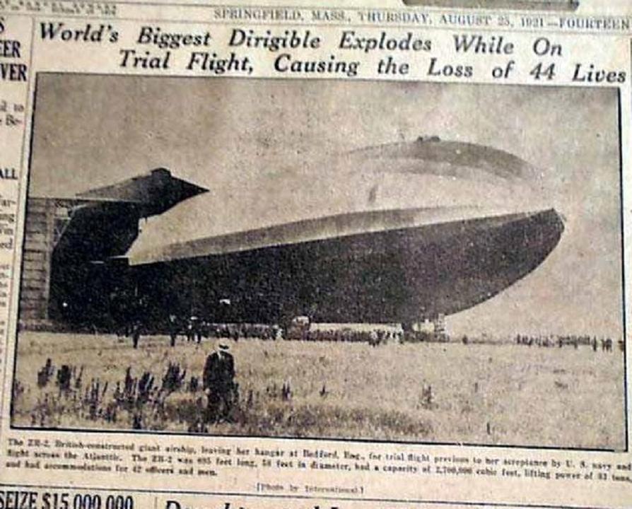 115k | "World's Biggest Dirigible Explodes While On Trial Flight, Causing the Loss of 44 Lives" Springfield Daily Republican?, Thursday, August 25, 1921. |