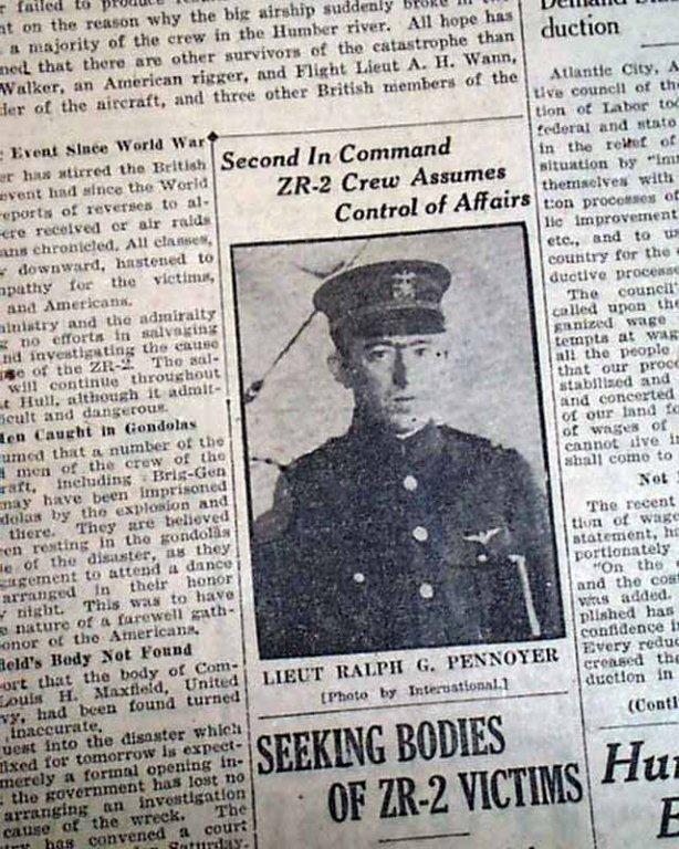 121k | "Second In Command ZR-2 Crew Assumes Control of Affairs" "Lieut Ralph G. Pennoyer" Old newspaper. |