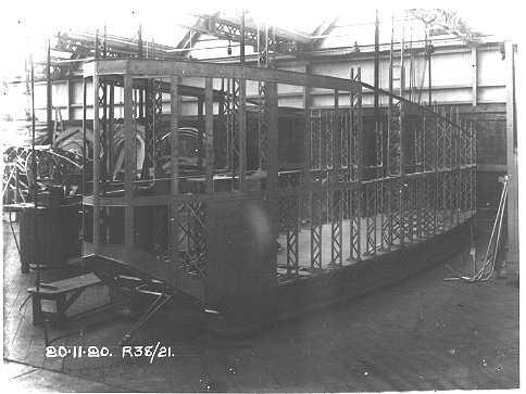 752k | "England Builds Huge Dirigible For U.S.—This most interesting photograph shows the frame structure of a modern dirigible, R-38, air ship. It is being built for the U.S. Navy by an English concern and will be one of the largest of the world. The same design will be followed as in the British R-34, which twice crossed the ocean last fall. Photograph by Underwood and Underwood." Courtesy of the Library of Congress (LoC), photo # Lot-8799-7. |