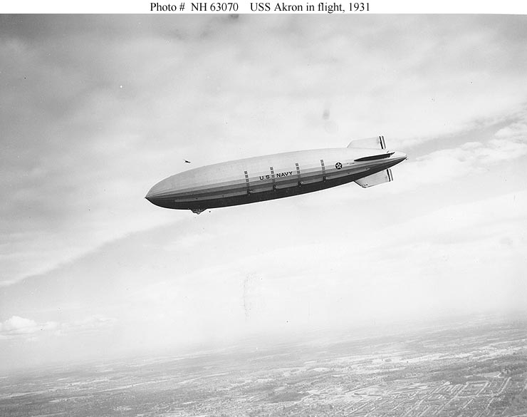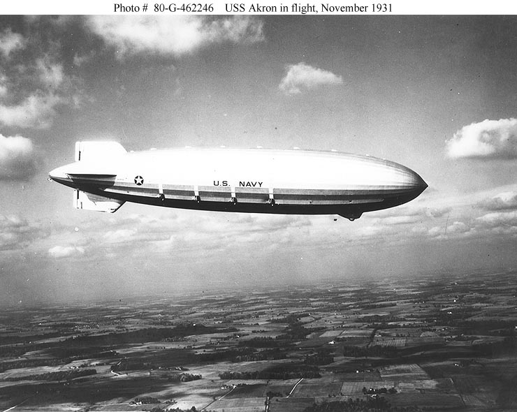 74k | USS Akron (ZRS-4) in flight over the Maryland Eastern Shore, 2 November 1931. Official U.S. Navy Photograph, now in the collections of the National Archives (# 80-G-462238). |