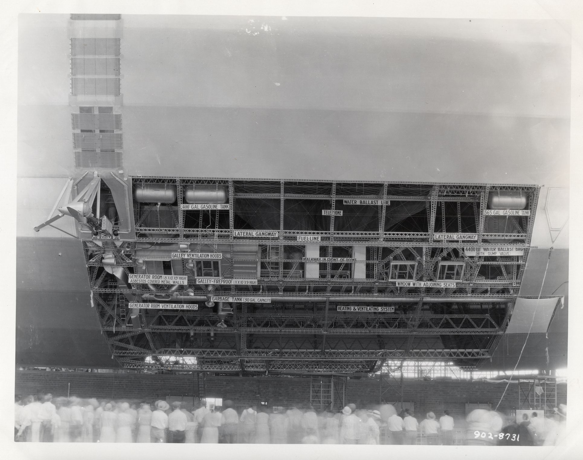 204k | USS Akron (ZRS-4) in hangar at Naval Air Station, Lakehurst, New Jersey. Photographed 22 October 1931. U.S. Navy Photograph, now in the collections of the National Archives and Records Administration (NARA), # 80-G-462005. |