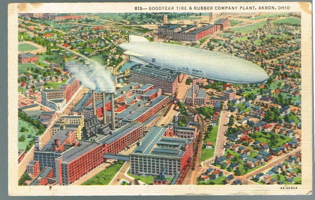 188k | "Goodyear Tire and Rubber Company Plants 1 and 2, in East Akron, U.S. Navy airship over them." Postcard mailed from Akron, Ohio, to Huntington, West Virginia, 24 October 1941. |