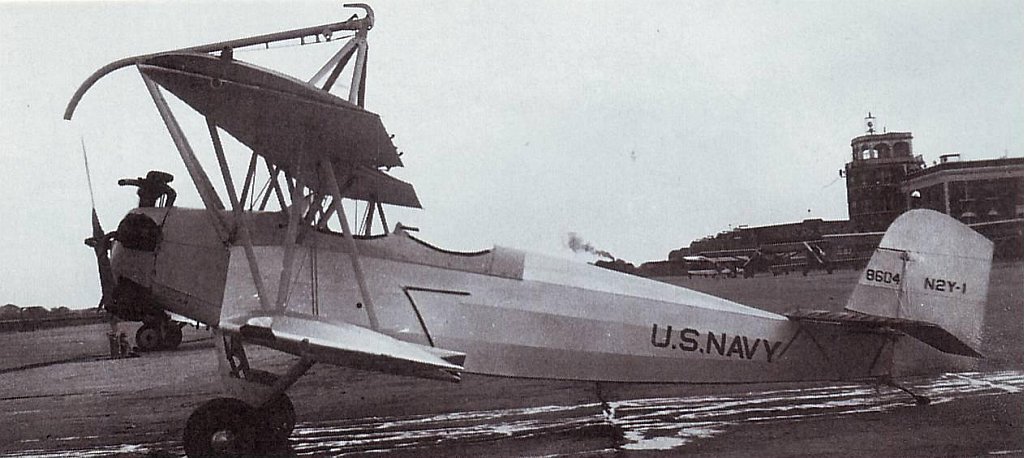 98k | A U.S. Navy Consolidated N2Y-1 (8604) while fitted for skyhook familiarization training. Photo courtesy Fred Bamberger Collection. From United States Navy Aircraft since 1911, by Gordon Swanborough and Peter M Bowers. |