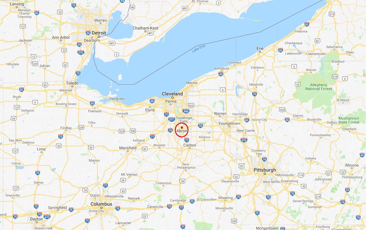 171k | ZRS-4 was named for the city of Akron, Ohio, home of Goodyear's subsidiary Goodyear-Zeppelin Company, which built the airship and her sister USS Macon (ZRS-5). (Map courtesy of HamsterMap.com.) |