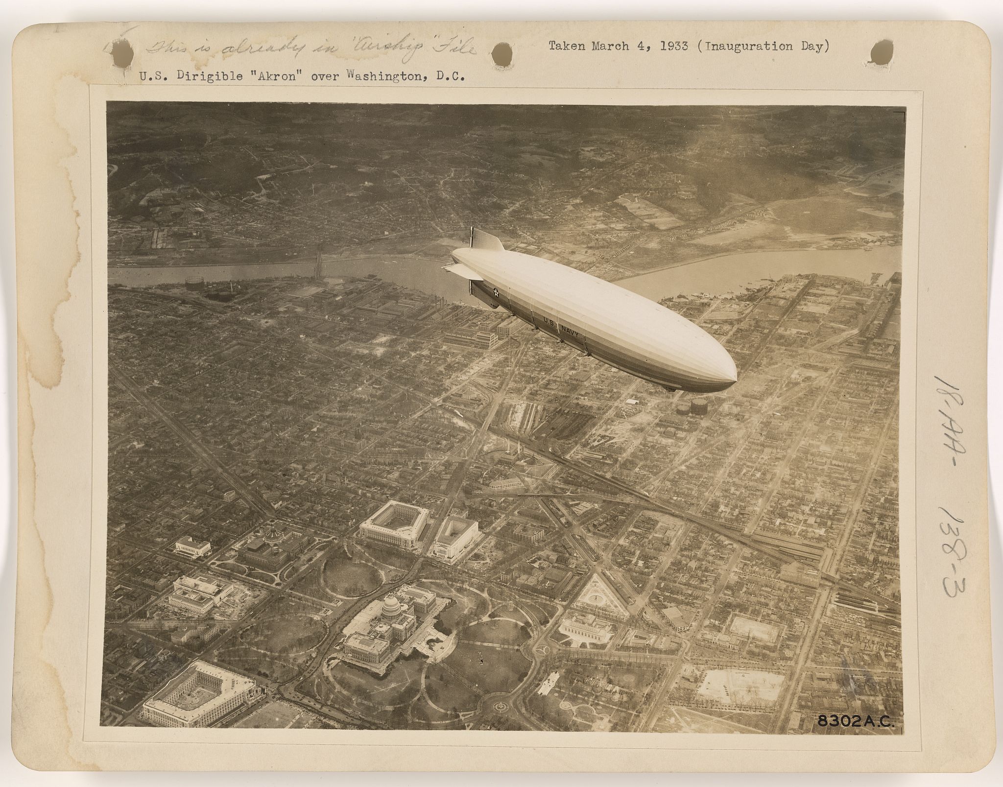 582k | Dirigible USS Akron (ZRS-4) over Washington, D.C. Taken on 4 March 1933, Inauguration Day for President Franklin D. Roosevelt. National Archives and Records Administration (NARA), # 18-AA-138-3. |