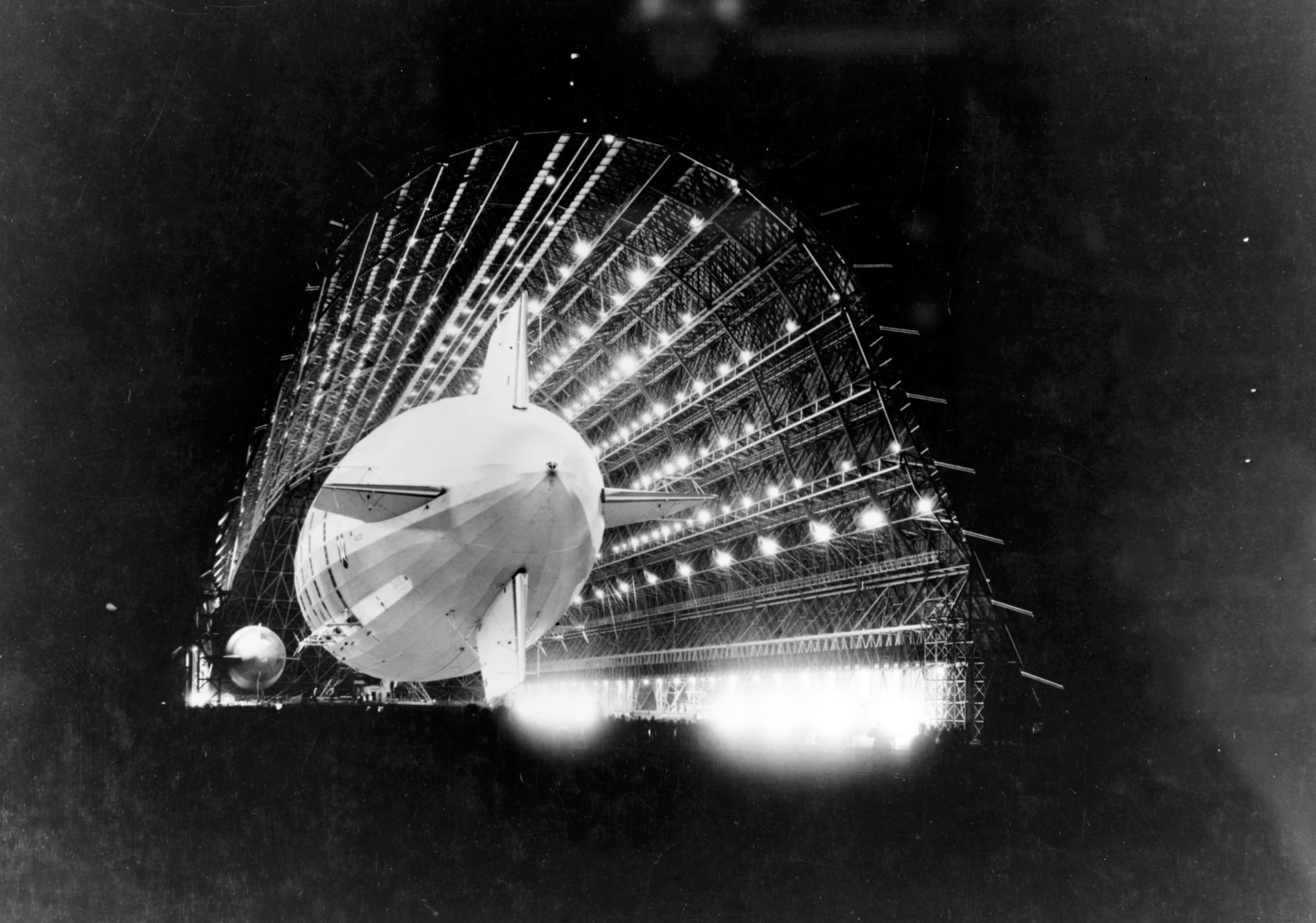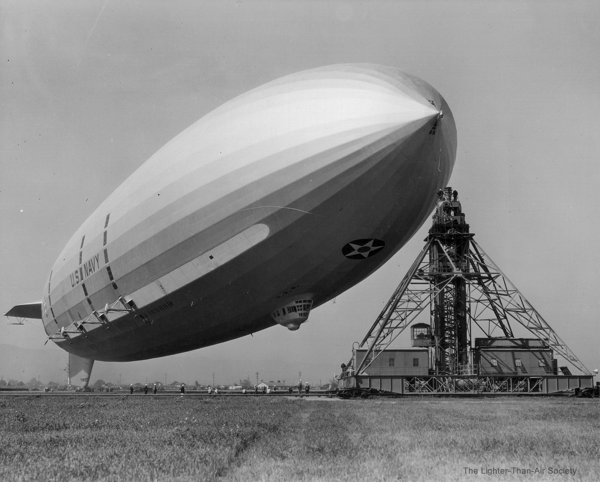 139k | USS Macon (ZRS-5) approaching mooring mast at Naval Air Station Moffet Field, Sunnyvale, California, 17 December 1933. NASA Ames Research Center, photo A91-0261-26. |
