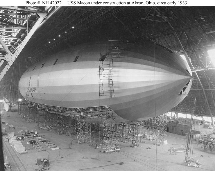382k | The future USS Macon (ZRS-5) under construction in the Goodyear-Zeppelin Corporation hangar at Akron, Ohio, circa 1932. U.S. Naval History and Heritage Command Photograph, # NH 42021. |