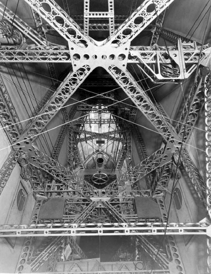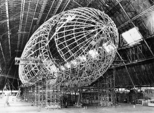61k | The skeleton of the future USS Macon (ZRS-5), in the Goodyear-Zeppelin Corporation hangar at Akron, Ohio. This is Goodyear-Zeppelin Corporation archives photo 743-A, dated 13 July 1932. (Thanks to Hendrick Stoops for the additional information.) |