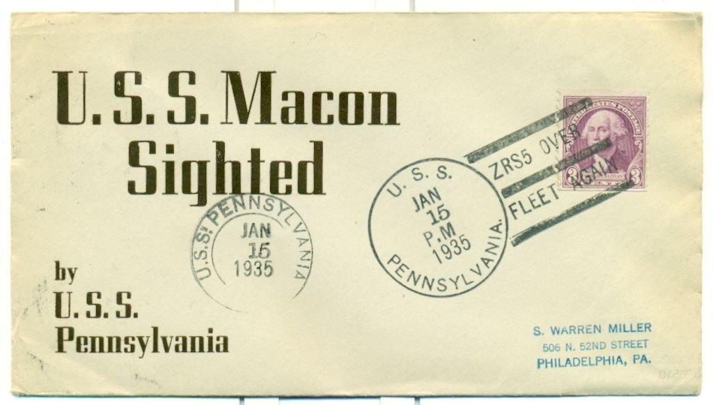 67k | "U.S.S. Macon Sighted by U.S.S. Pennsylvania." Dated 15 January 1935. |