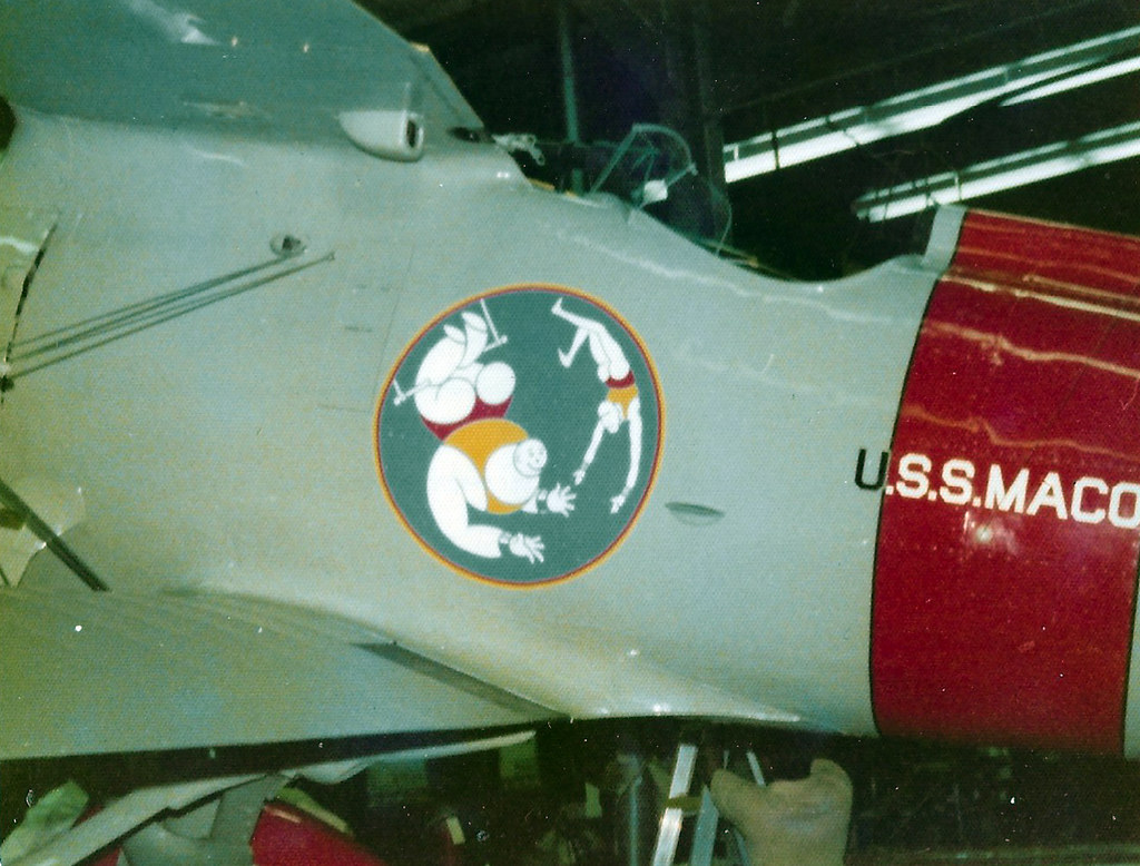 215k | An F-9C Sparrowhawk aircraft being prepared for exhibit in the Navy Memorial Museum (now National Museum of the U.S. Navy). Building 76, Washington Navy Yard, 1975. Note the insignia of the airship USS Macon (ZRS-5). National Museum of the U.S. Navy (NMUSN) Photograph Collection, # NMUSN-5157. |