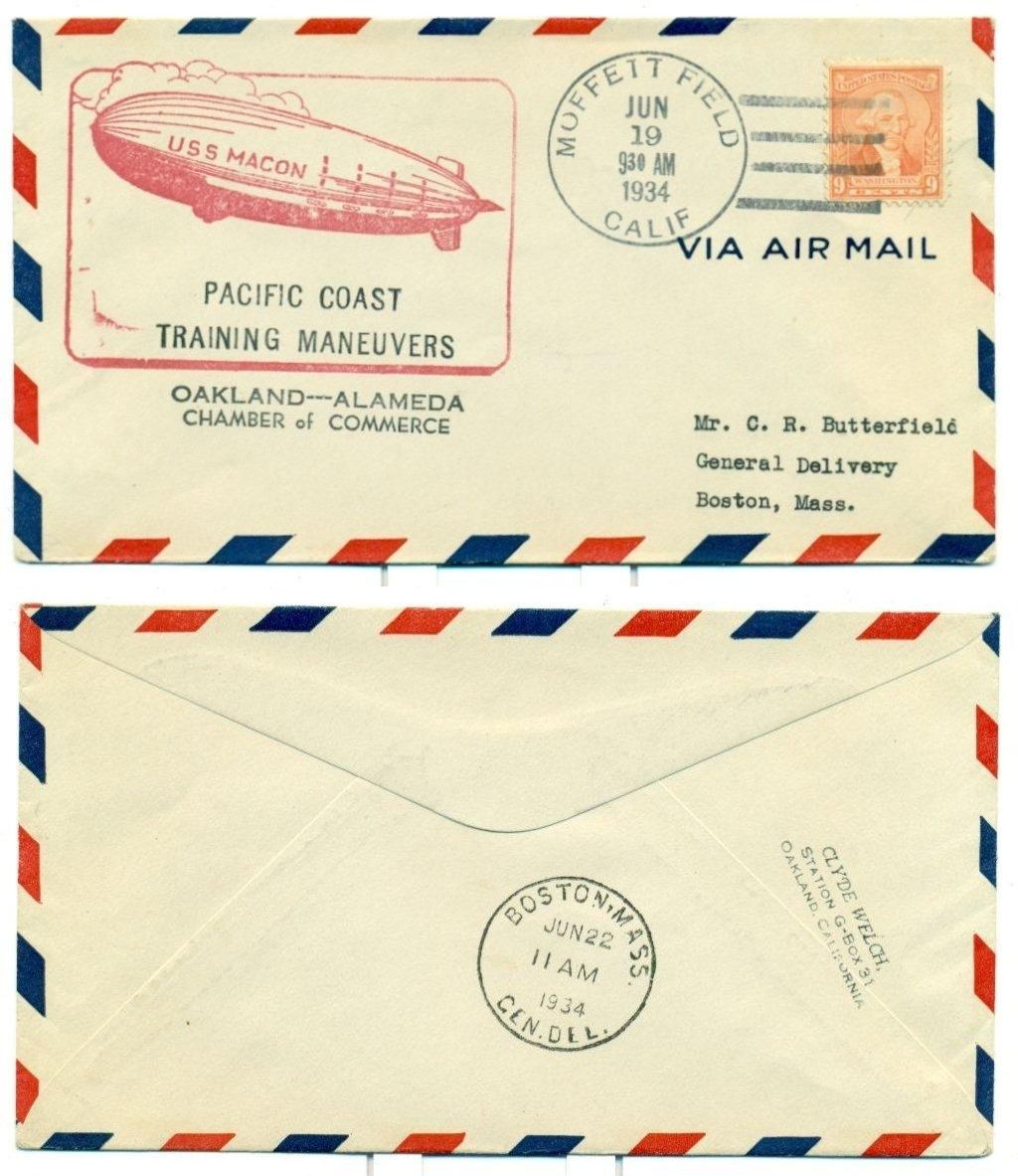 157k | USS Macon, Pacific Coast Training Maneuvers, Oakland-Alameda Chamber of Commerce, Moffett Field, Calif., 19 June 1934 to Boston, Mass., 22 June 1934. |