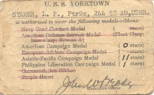 Contributed by Linda Whealton, daughter of LT Pete Stamer, | |||
