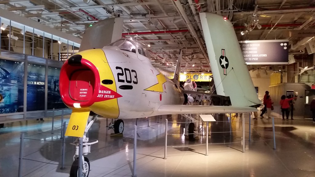 ![]() NS-cv11-mn027 North American FJ-3 Fury, BuNo 135868, modex AF203, painted in the colors of VF-33 "Tarsiers," which flew from Intrepid in 1957 (124Kb) |