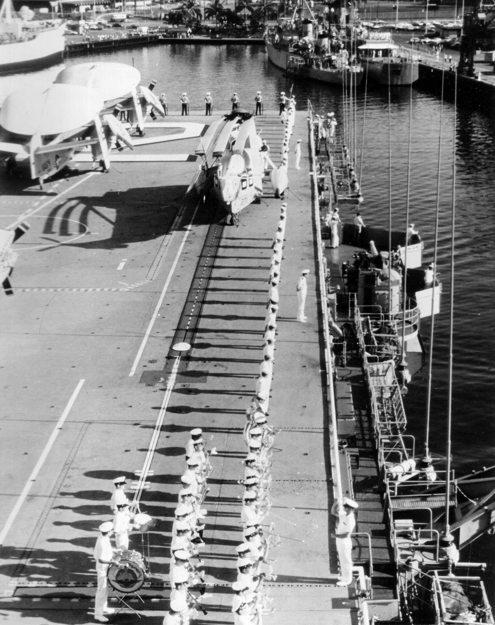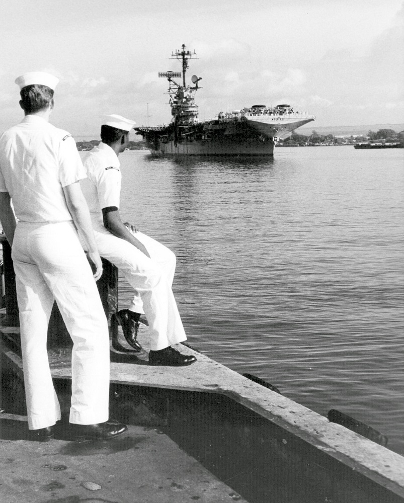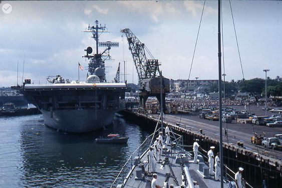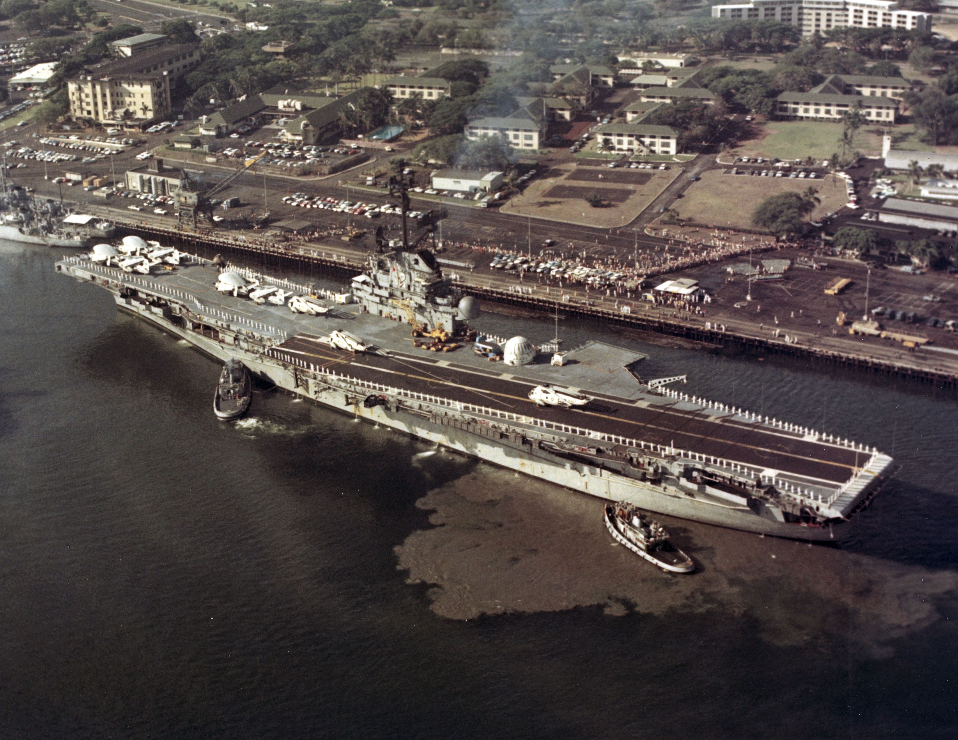 463k | USS Hornet (CVS-12) arrived in Pearl Harbor on 1 November 1969, and moored to Pier Hotel, Berths Three and Four. |