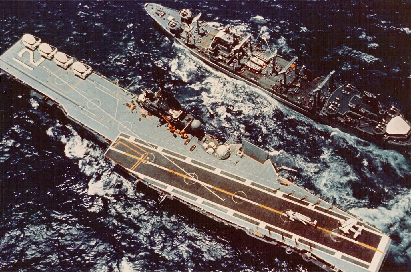 207k | USS Hassayampa (AO-145) refueling USS Hornet (CVS-12), while part of the Apollo 12 recovery fleet, 23 November 1969. National Naval Aviation Museum (NNAM) photo, # 1996.488.245.042. |