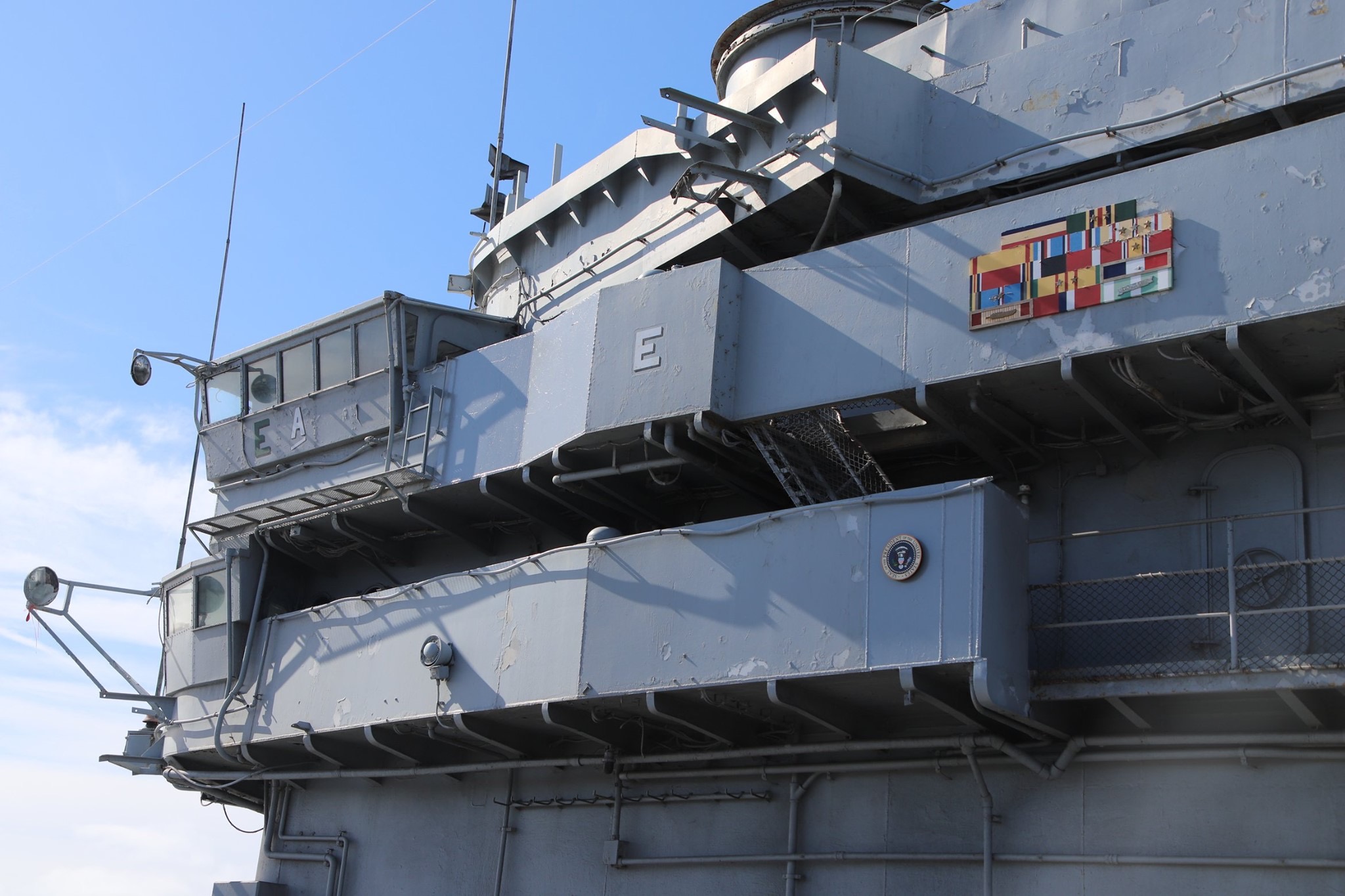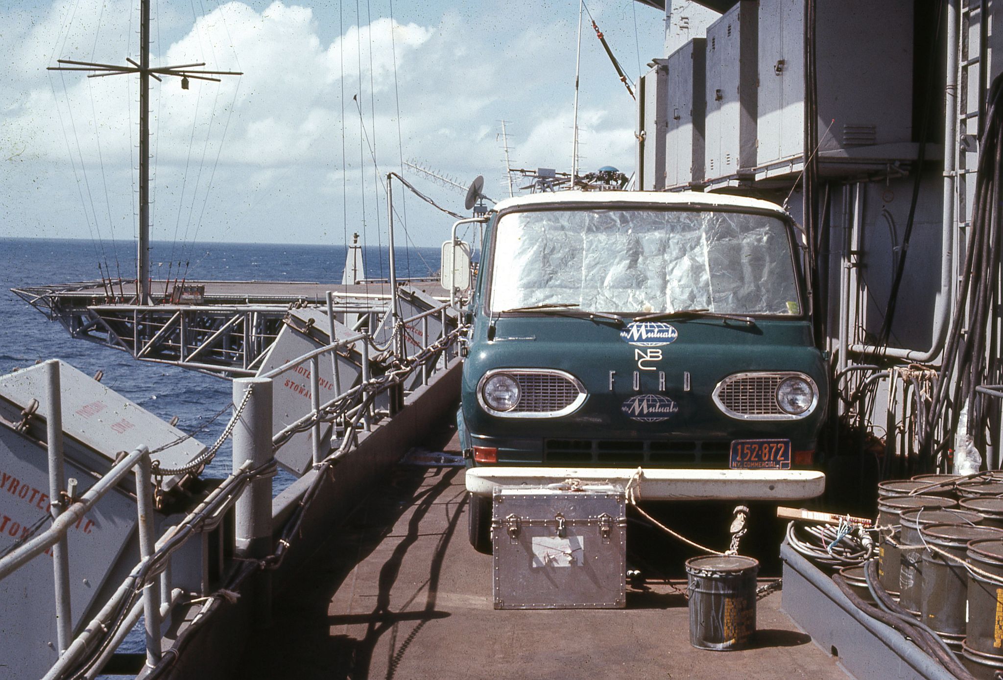 489k | The NBC Mutual Radio Network van, lashed down to the starboard side of the island so radio announcer Don Blair could broadcast the recovery live over radio. |