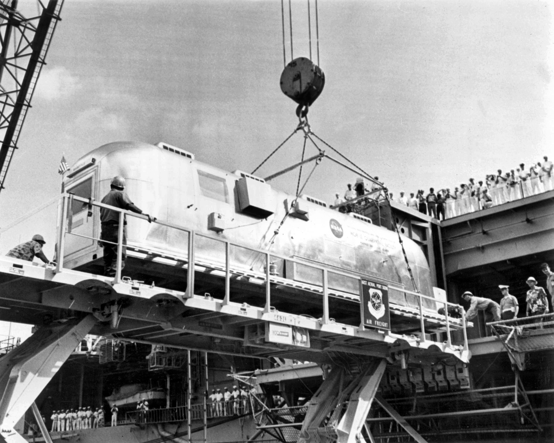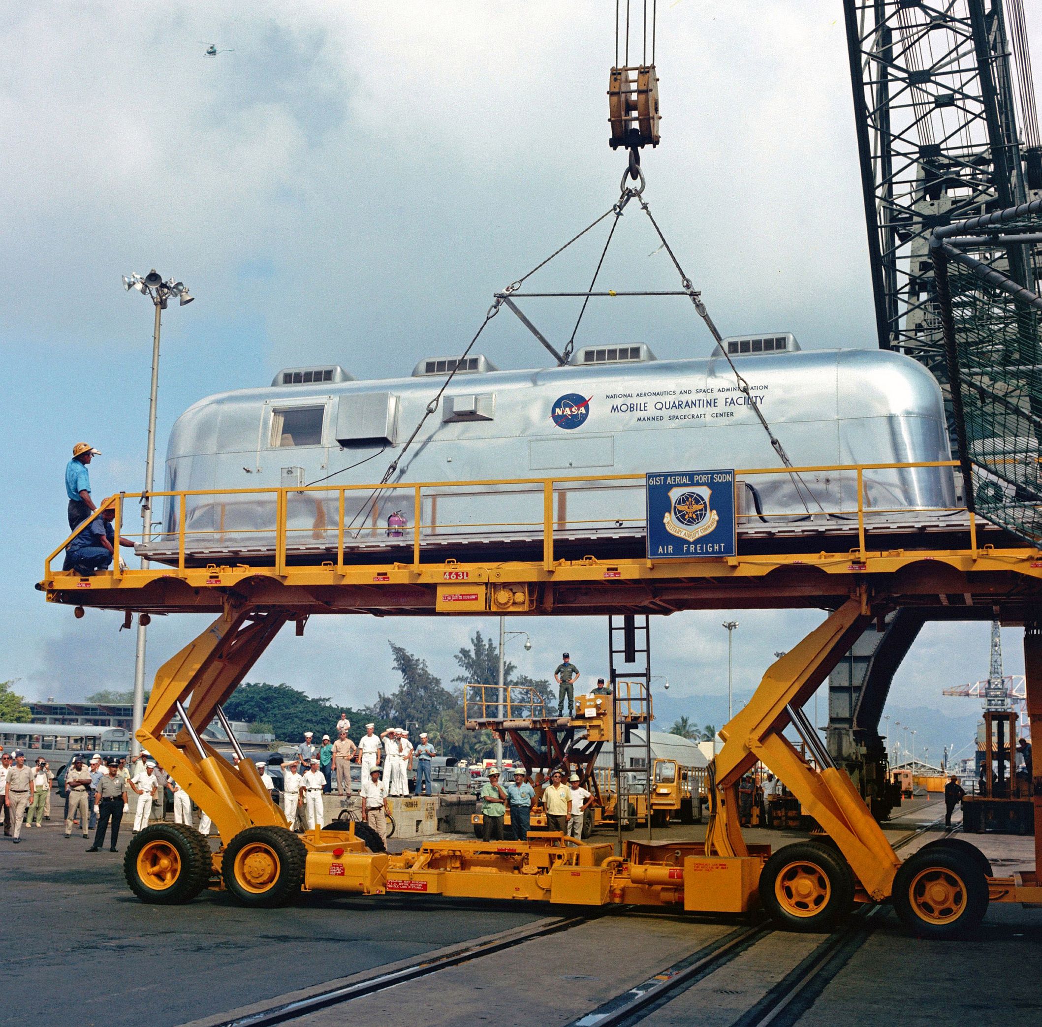 1.16M | The Mobile Quarantine Facility (MQF), with the Apollo 11 astronauts, being loaded into the cargo hold of a Military Airlift Command C-141A Starlifter, tail number 66‑7958. |