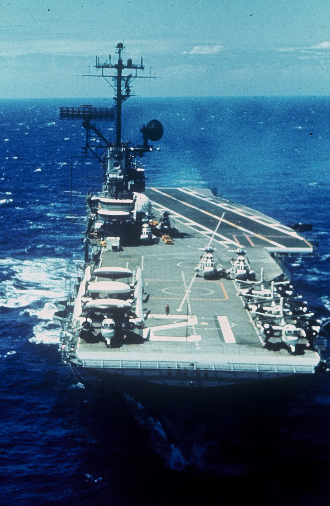 979k | The Primary Recovery Ship (PRS), USS Hornet (CVS-12), part of Task Force (TF) 130, steaming to a location for the recovery of an Apollo lunar landing mission: