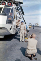 441k | The Apollo 12 astronauts, Charles F. Conrad, Jr., Richard F. Gordon, Jr., and Alan L. Bean, emerge from the SH-3D Sea King recovery helicopter of Helicopier anti-submarine Squadron Four (HS-4). They would go directly to the Mobile Quarantine Facility on the hangar deck of USS Hornet (CVS-12). Naval History and Heritage Command (HN&NC) photo USN 1142561 by PH1 J.W. Rogers. |