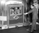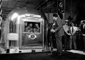219k | At the Long Beach Naval Base, General Electric installed a one-way (broadcast) earth terminal to be used by ABC to broadcast video live via satellite back to the mainland USA, from where it was distributed worldwide. This photo shows the antenna before the white weather dome was placed over it. |