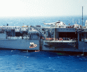 643k | In late June, Hornet steamed to Hawaii and was "chopped" to TF-130. Two Mobile Quarantine Facility (MQF) trailers and other NASA recovery equipment was flown to Pearl Harbor by USAF cargo aircraft and then barged to Hornet's location at the Pearl Harbor Navy Base. US Navy photo. |