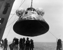 446k | The Apollo 12 Command Module, Yankee Clipper, is hoisted aboard USS Hornet (CVS-12). The spacecraft splashed down less than three miles from the aircraft carrier in the Pacific Ocean, southeast of the island of Samoa, Monday, 24 November 1969. Naval History & Heritage Command (NH&HC) photo K-80890. |