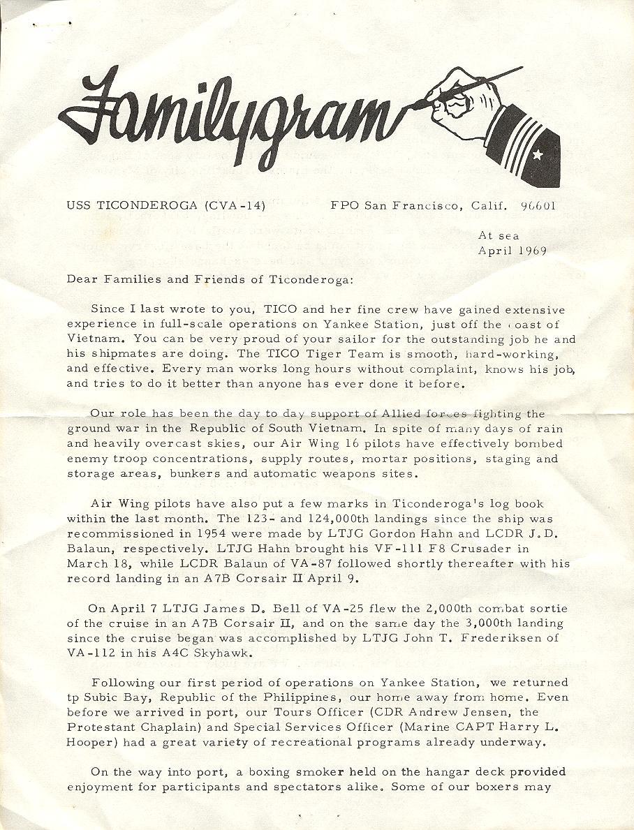 Contributed by Chester O. Morris, USS Ticonderoga, 1967-69.