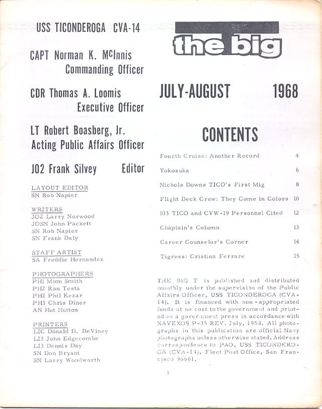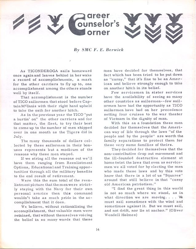 Contributed by Chester O. Morris, USS Ticonderoga, 1967-69.