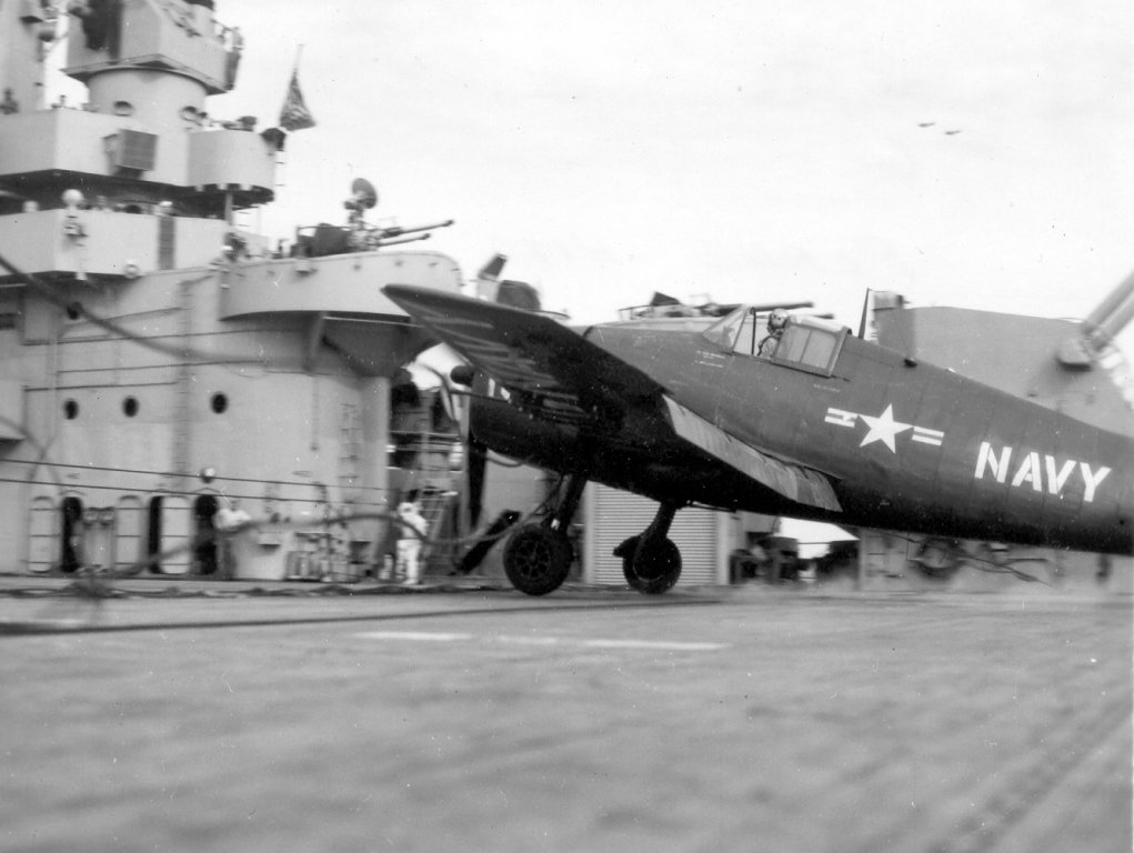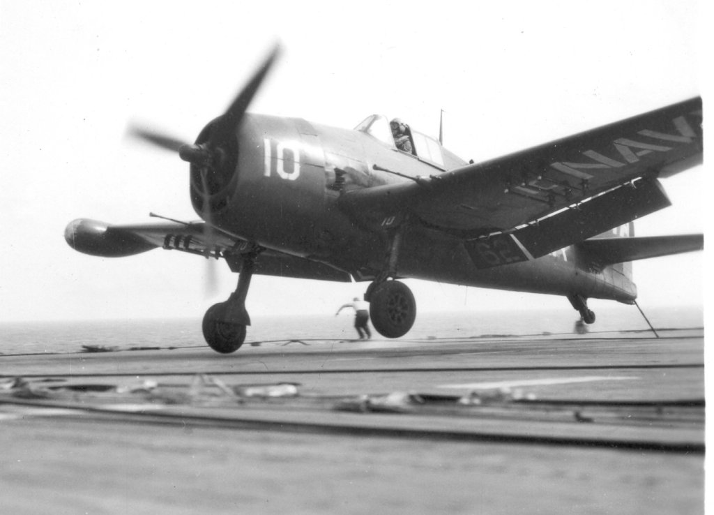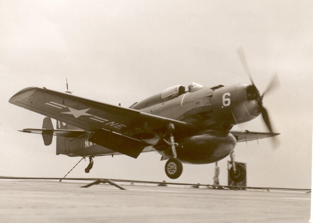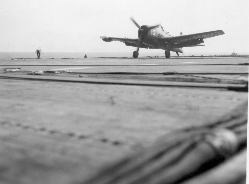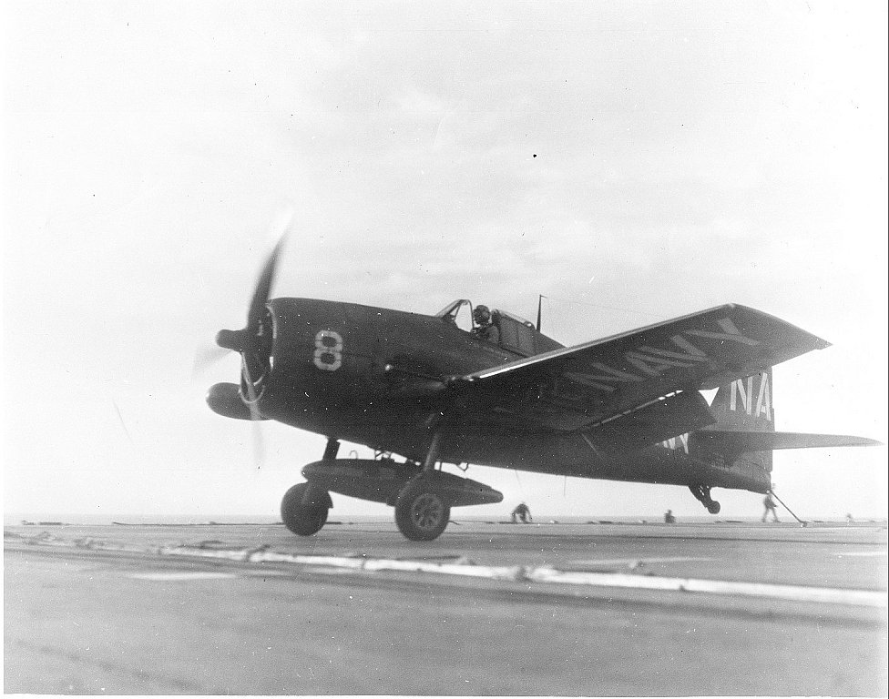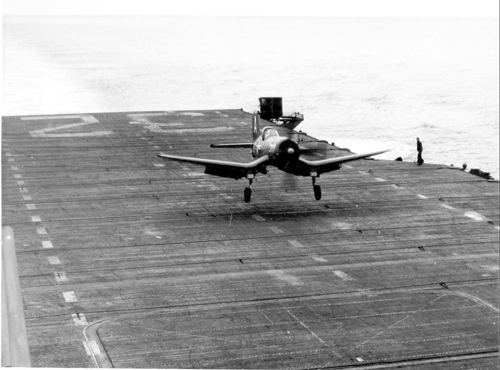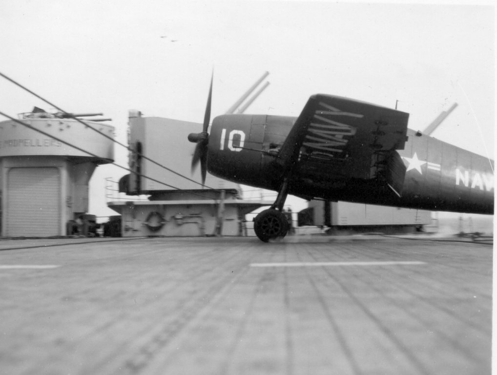 150Kb | F4U Corsair, #A-301, landing. Date and place unknown. |