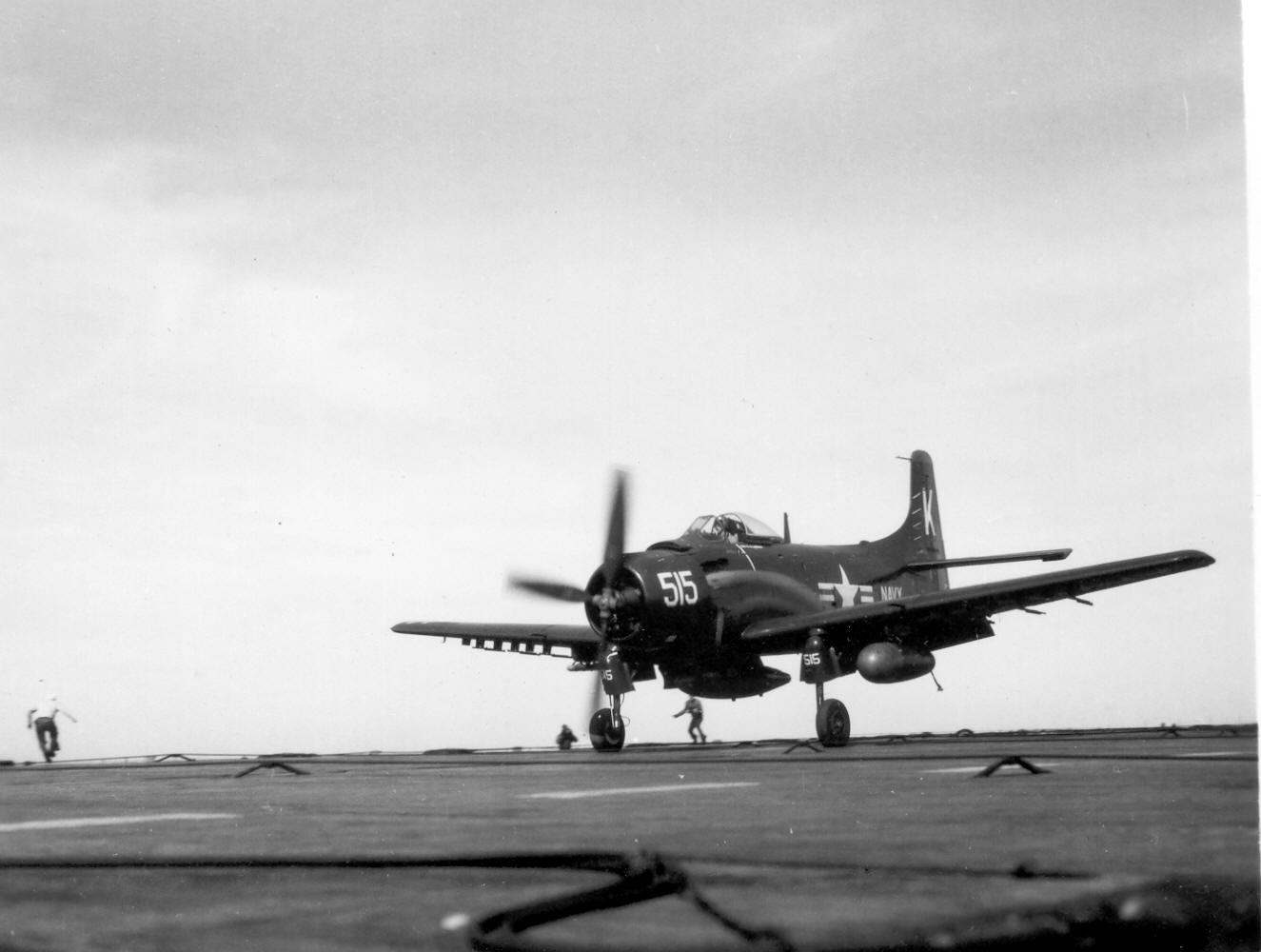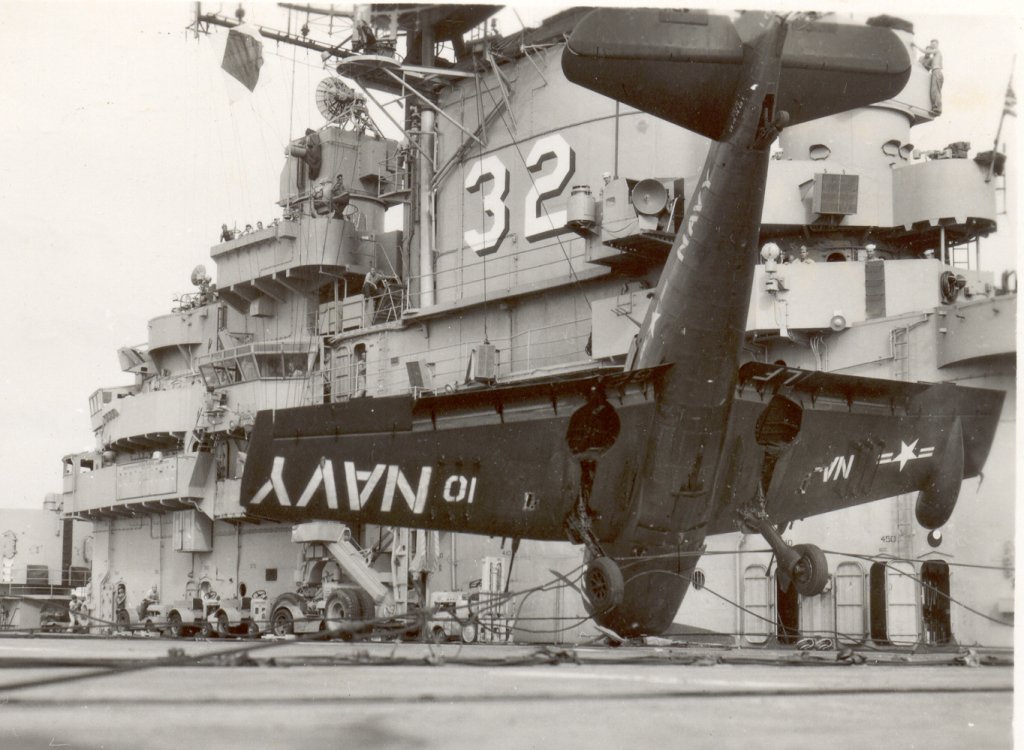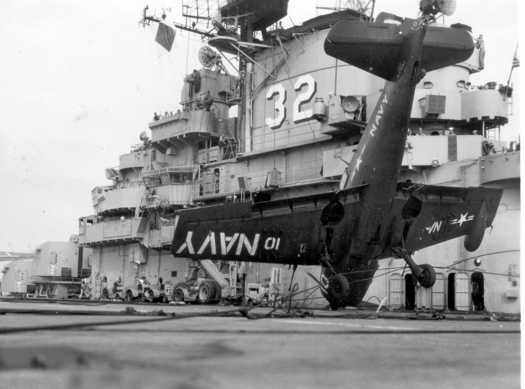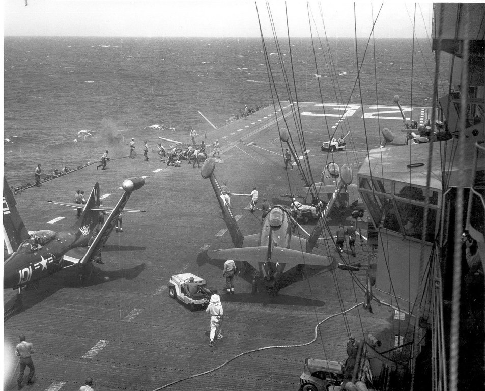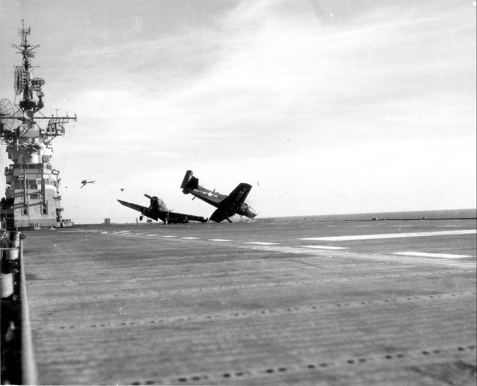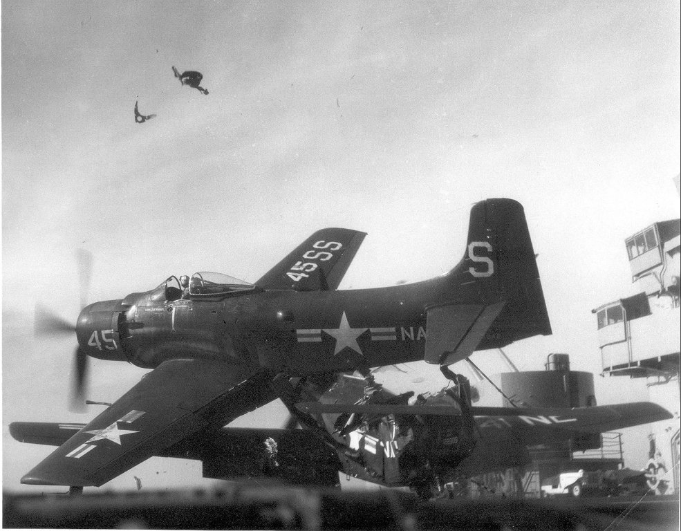 | AD Skyraider hits parked AD on flight deck | |||