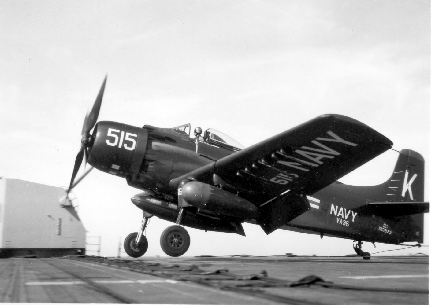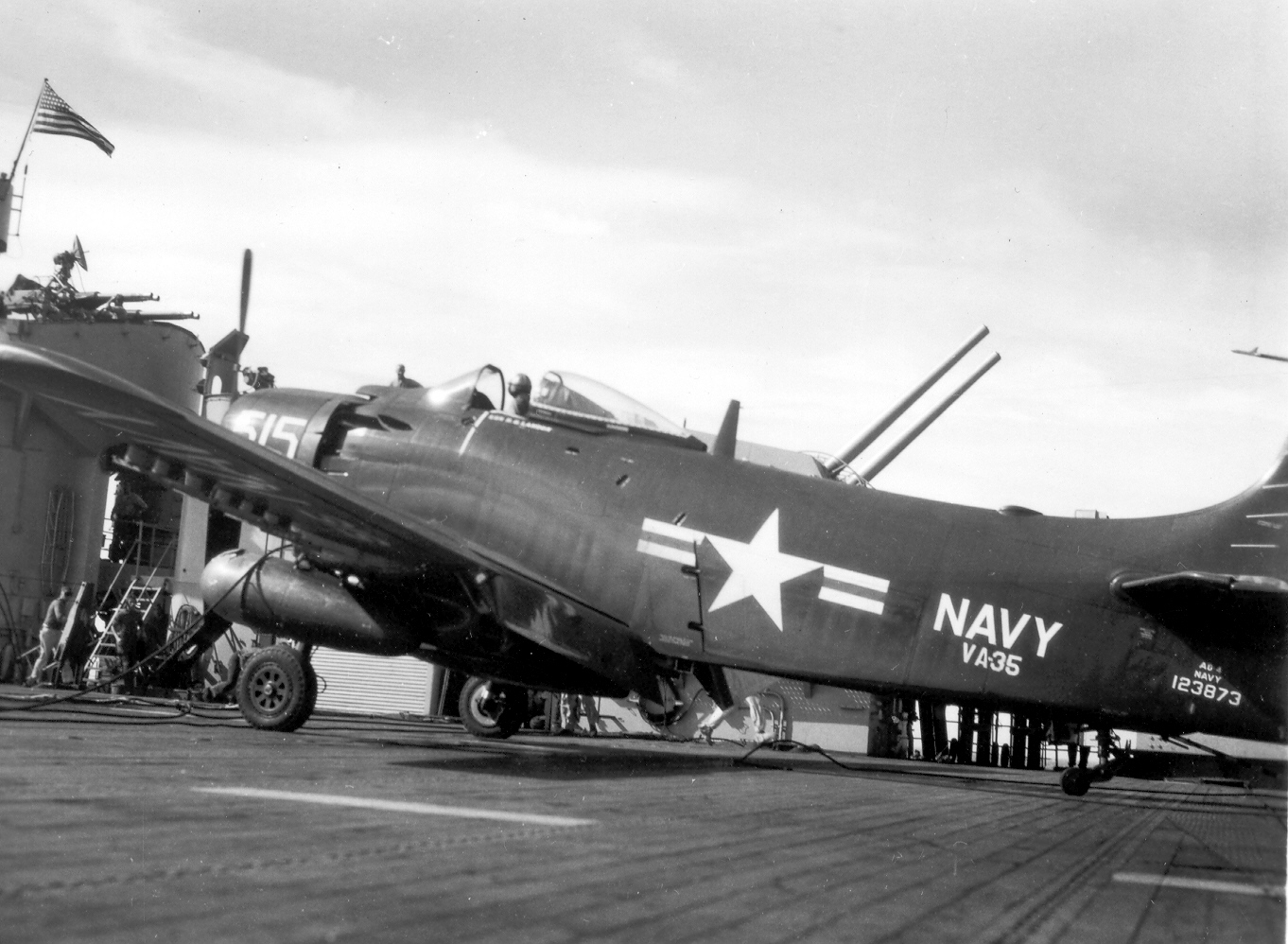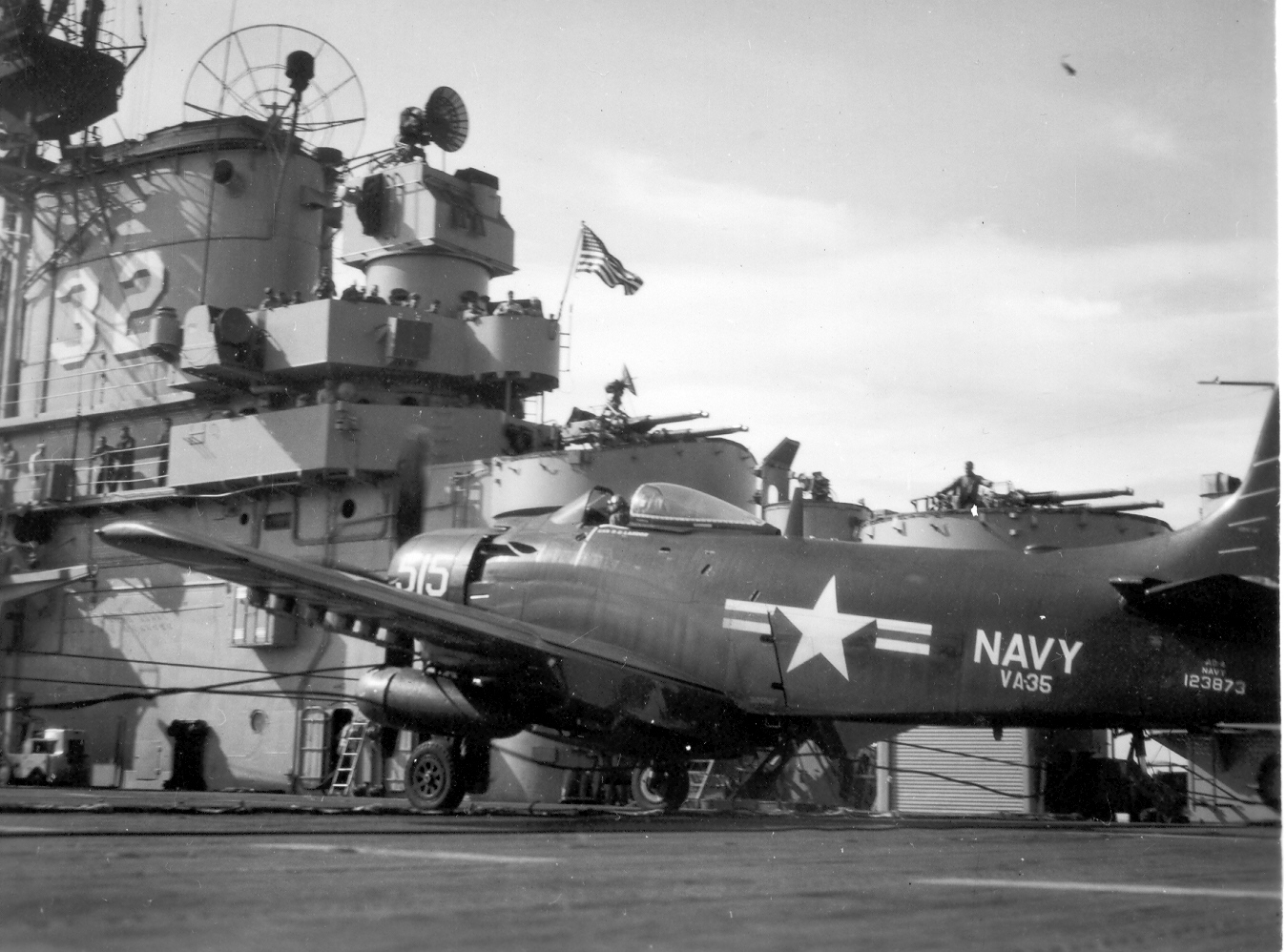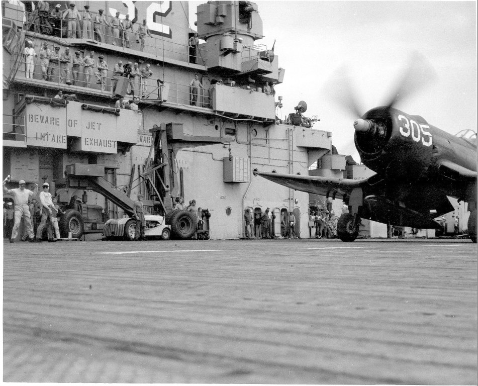 | AD Skyraider hits parked AD on flight deck | |||