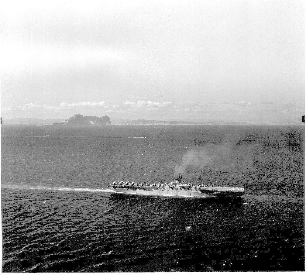 218Kb | September 1952, Gibraltar. USS Leyte (CV-32) and destroyers. |