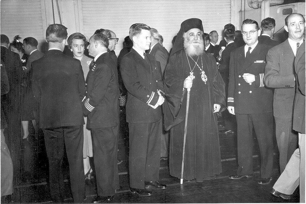 188Kb | November 1952. Salonika, Greece. Greek bishop visiting with ship's chaplain, LCDR Dirks. |