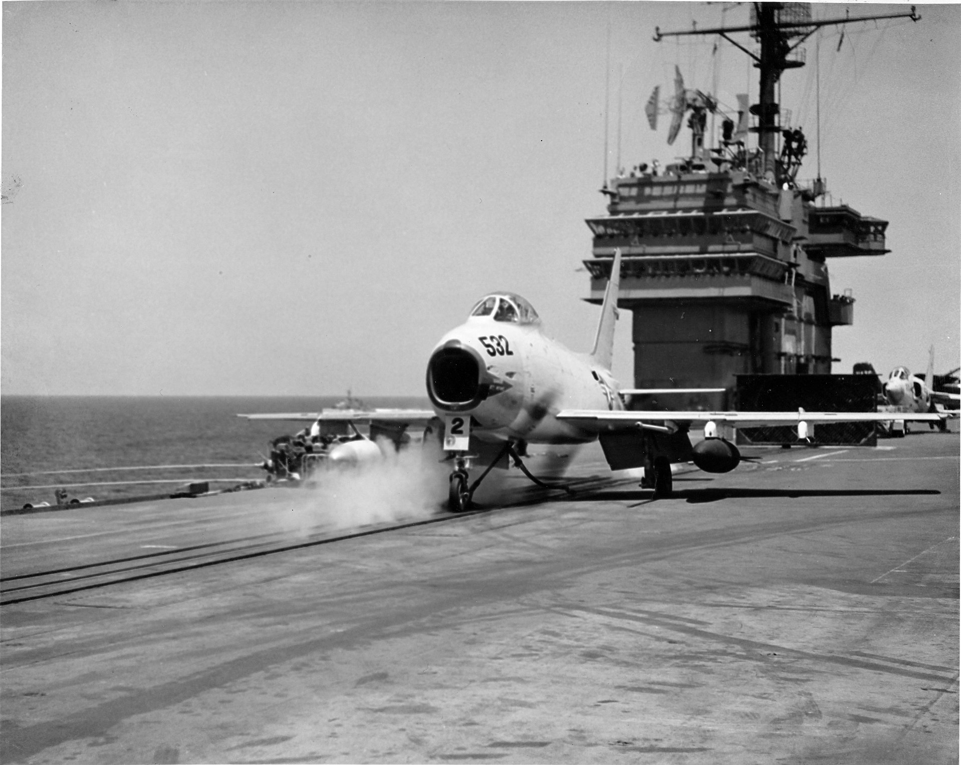 ![]() NS-cv60-ph05 Flight operations, 1957. An FJ-4B Fury (appears to be BuNo 139532) about to launch from USS Saratoga (CVA-60). [CVA-60 1664(L)] 381Kb |