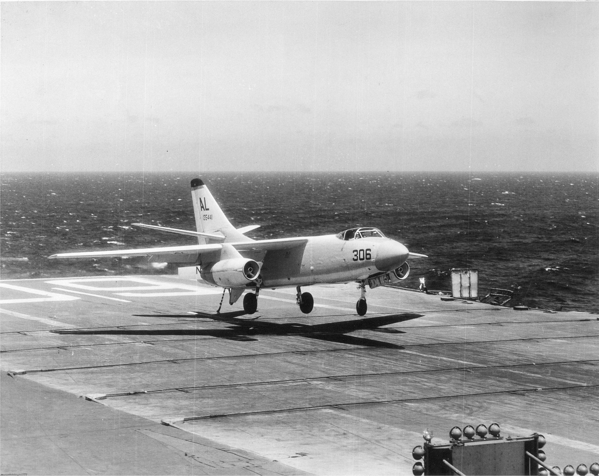 ![]() NS-cv60-ph09 A3D-1 Skywarrior recovering aboard Saratoga, 1957. This aircraft (BuNo 135441) was assigned to VAH-3 "Sea Dragons," CVG-17, aboard USS Franklin D. Roosevelt (CVA-42) and was lost in an accident in July 1957. [CVA-60 2477(L)] 558Kb |