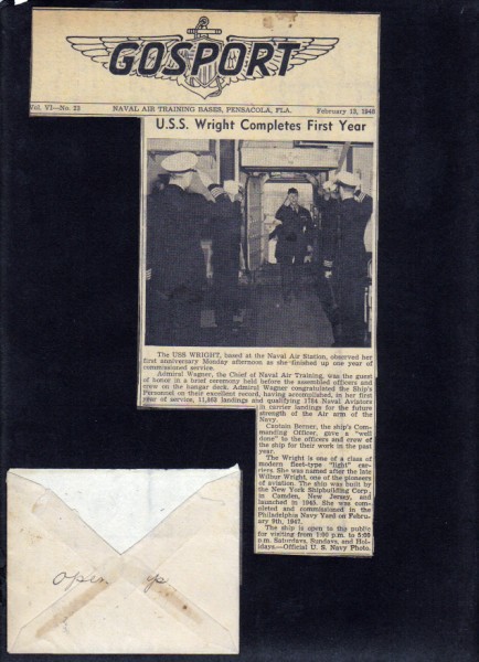 "Buddy" Cronin was a plankowner of USS Wright. These photos were taken off the coast of Pensacola, Fla., during flight training operations, circa 1947–1950.