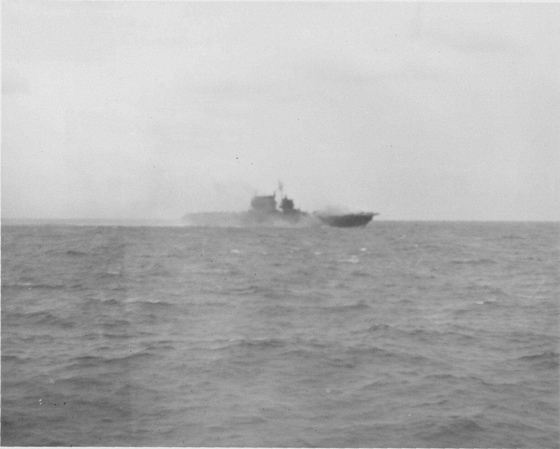 forward was wrecked, her starboard side was holed twice and large fires were started in her hangar